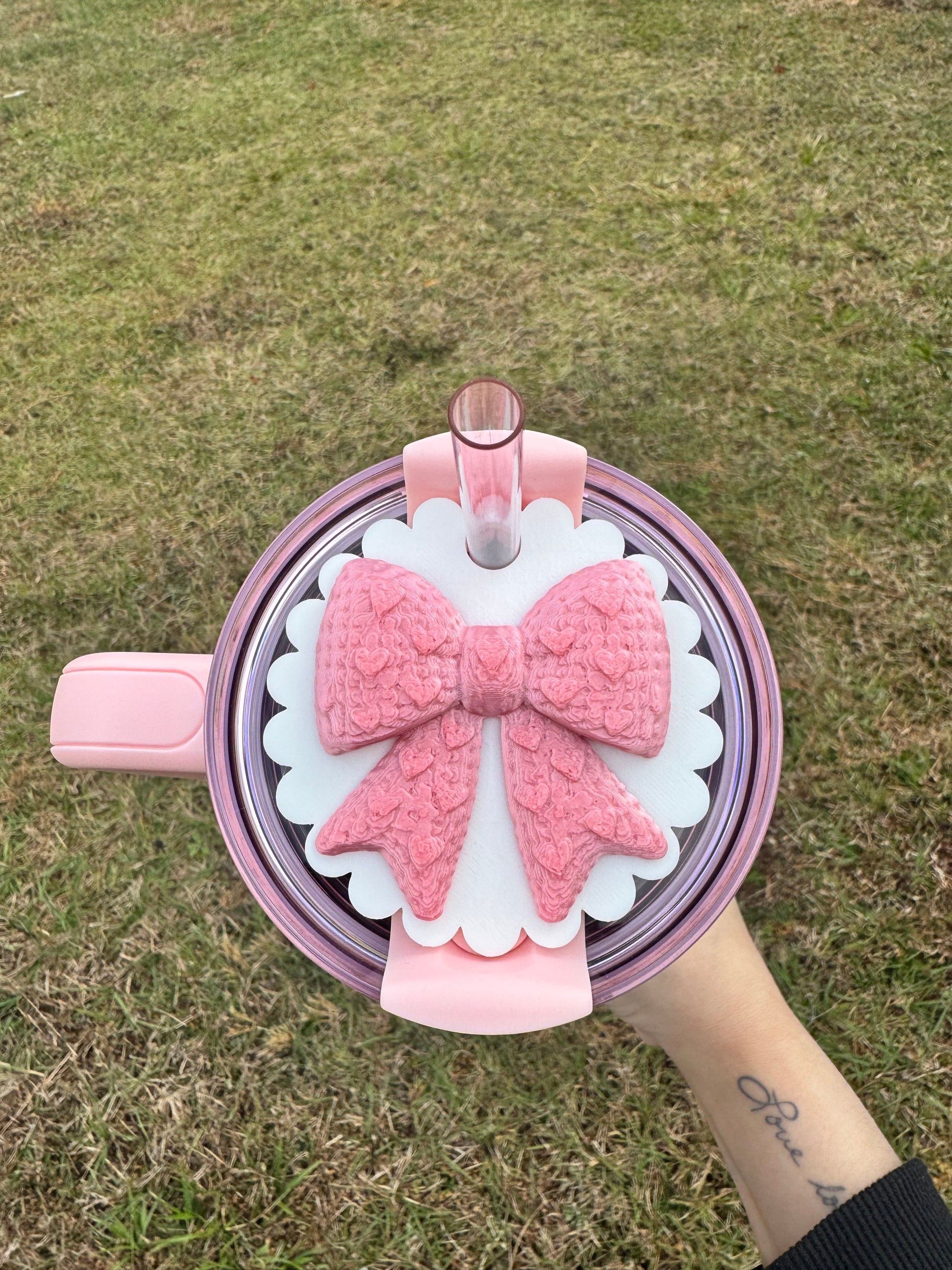 3D Printed Knitted Bow Stanley Lid Topper - 40oz