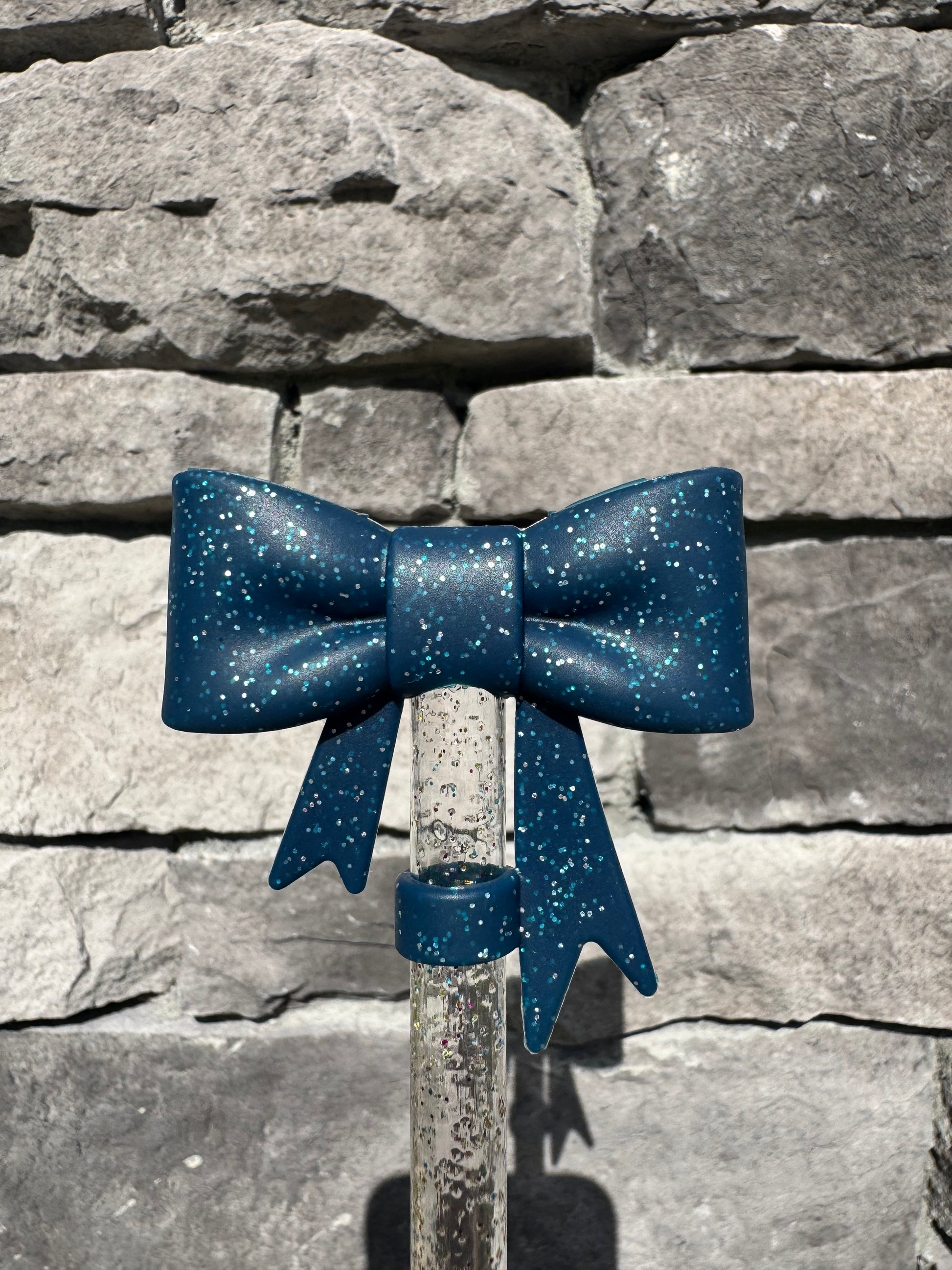 Navy Glitter Large Bow - Straw Topper