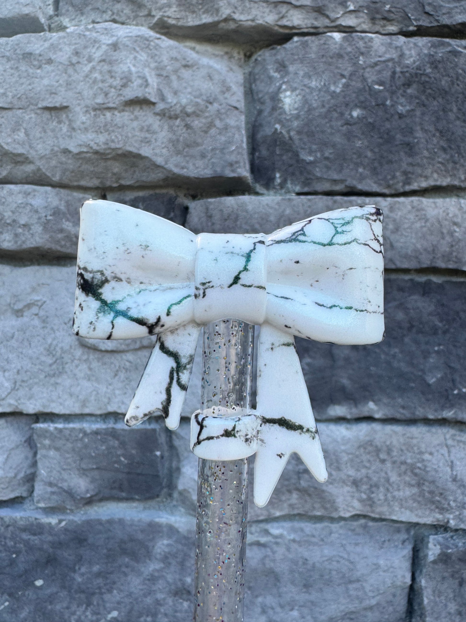 White Opal Marble Large Bow - Straw Topper